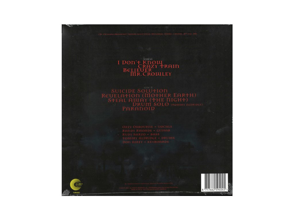 Ozzy Osbourne: Live In Montreal 1981 (1LP, Yellow, 2025)